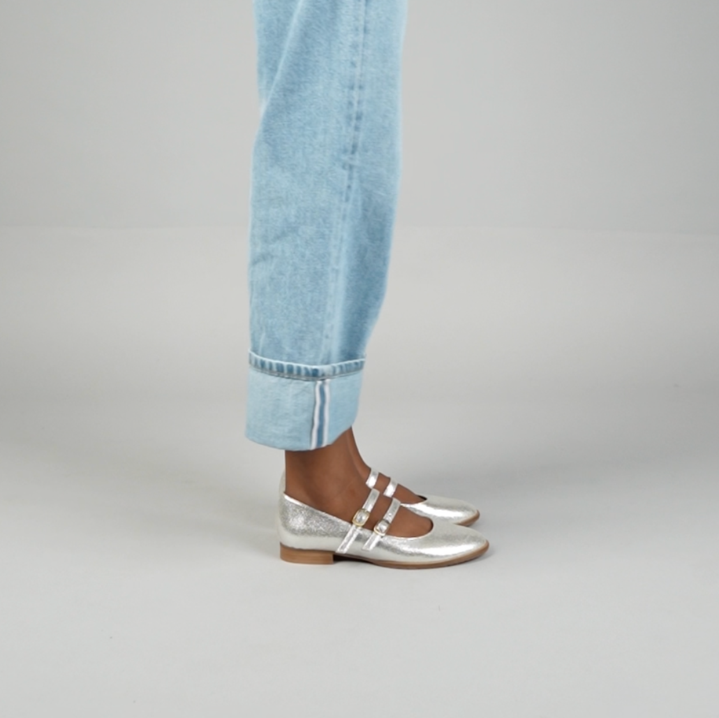 Anya is the perfect flat Mary Jane. With its double straps and shiny silver upper, it will complement your outfits and keep you comfortable all day! The shoes feature double straps for added security and are perfect for those with high arches. Effortlessly chic and comfortable.
