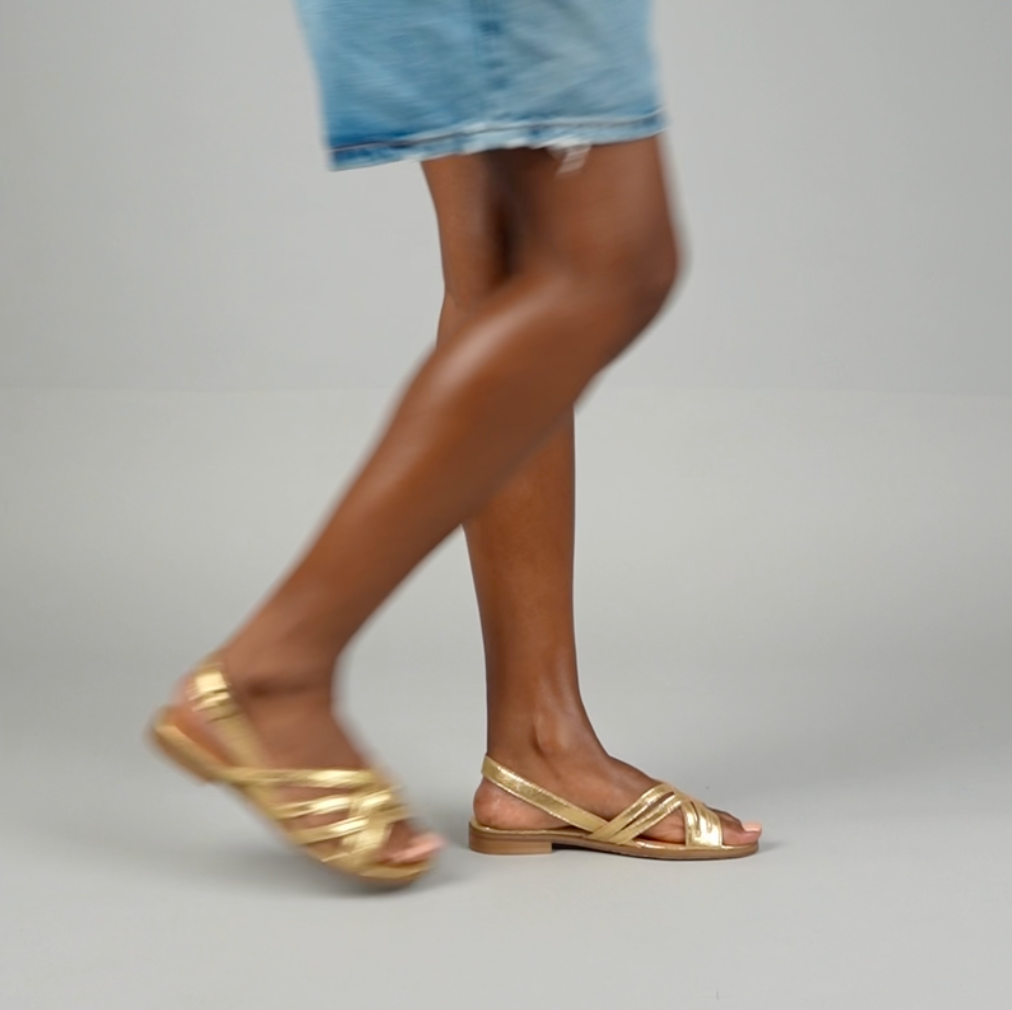 Add a touch of gold to your summer style with Niki Gold sandals! These fun flats feature a metallic gold vegan leather, adding an elegant and stylish twist to any outfit. The minimal design and ankle strap provide extra support while keeping the look effortlessly chic. Step out in Niki Gold for a playful yet sophisticated look!